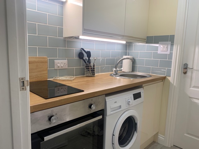 The studio-style accommodation comprises of a comfy double bed, sofa and dining table & chairs. The kitchen is equipped with an electric oven, two ring hob, fridge/freezer, washing machine, kettle and toaster. Completing the inside is a stylish bathroom with large shower cubicle and deluge shower, WC and basin, and heated towel rail.